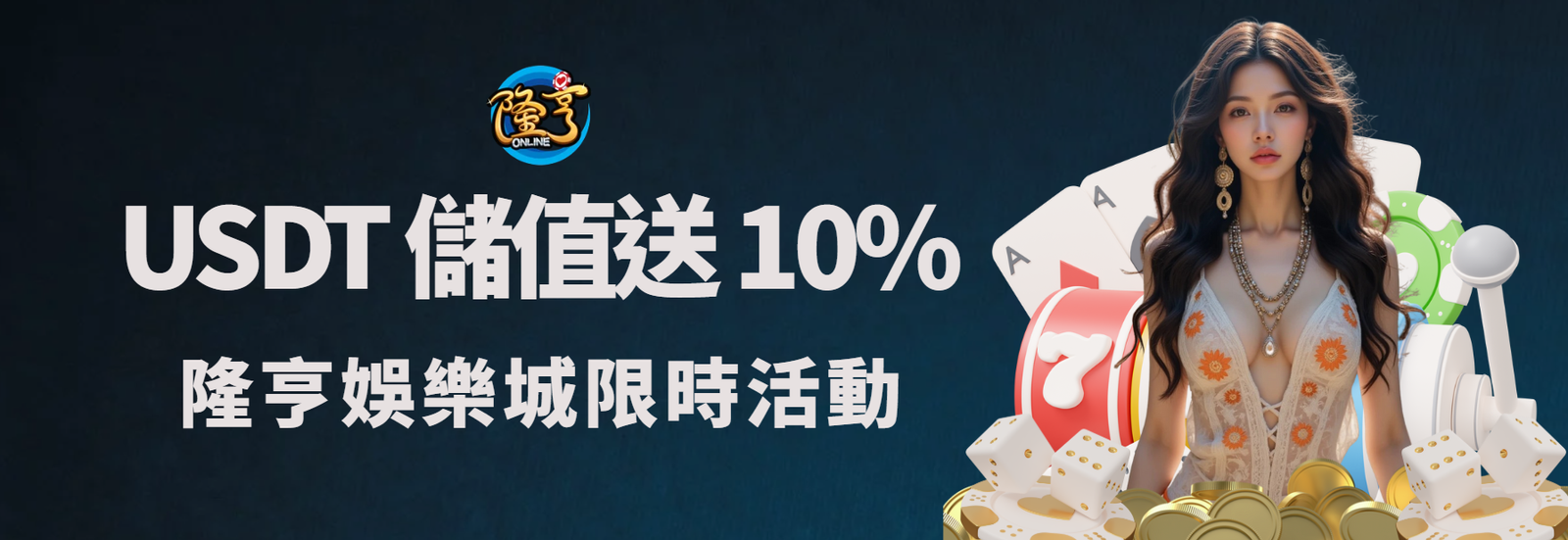 隆亨娛樂城限時活動|USDT 儲值送 10% 現金紅利